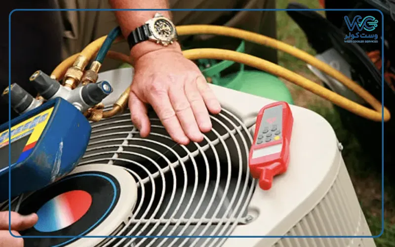سرویس کامل در وست کولر شامل شستشوی فشار قوی کویل‌ها با دستگاه کارواش، تست نشتی اتصالات، آچارکشی ترمینال‌های برقی و ضدعفونی کردن مجاری هواست. این کار باعث می‌شود فشار از روی قطعات برقی برداشته شده و دستگاه با کمترین تلاش، بیشترین سرما را تولید کند که نتیجه آن افزایش عمر قطعات است. سرویسکاران ما همچنین سلامت خازن‌ها و سنسورها را چک می‌کنند تا از خرابی‌های احتمالی در آینده نزدیک پیشگیری کرده و شما را با یک دستگاه کاملاً مطمئن تنها بگذارند.